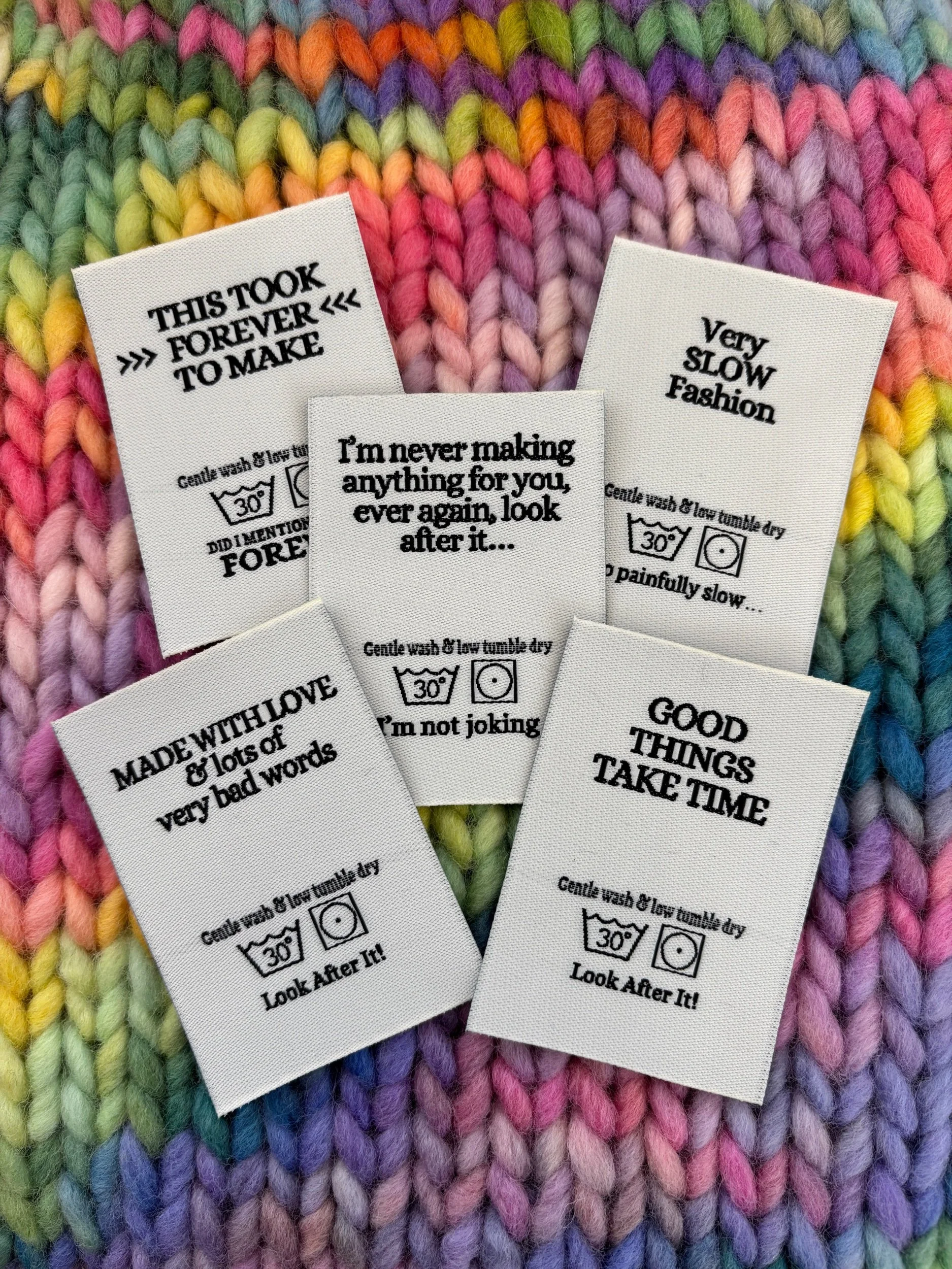 The perfect finishing touch to your handmade garments & projects to let the recipient know just how SLOW hand crafted fashion is!
