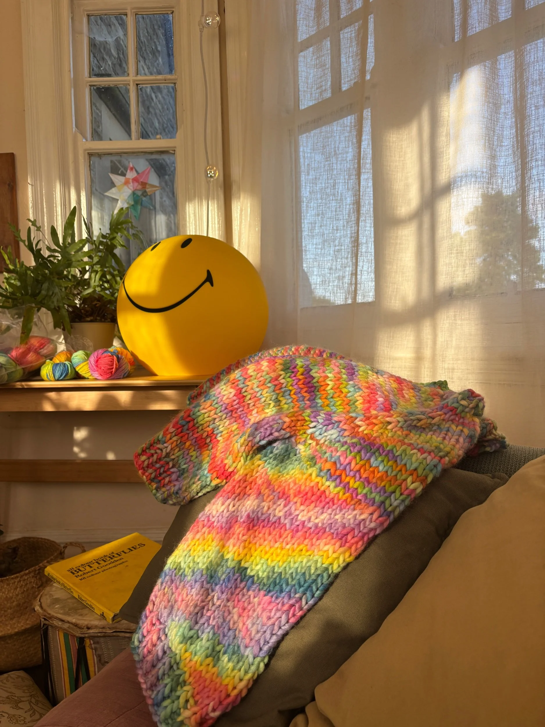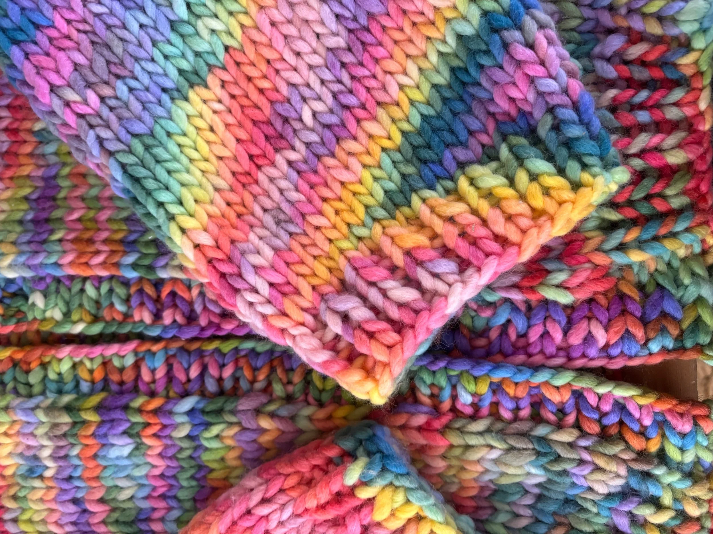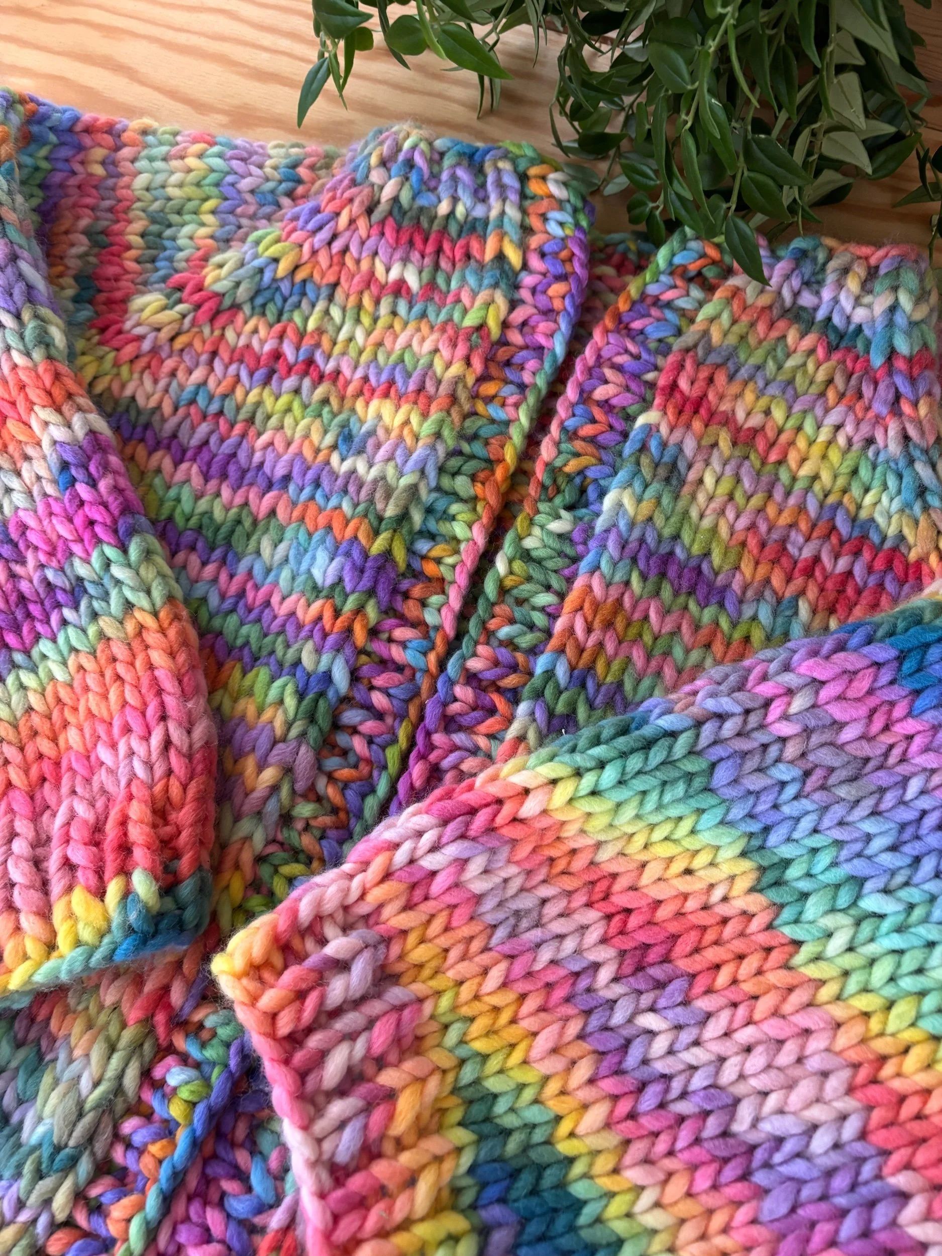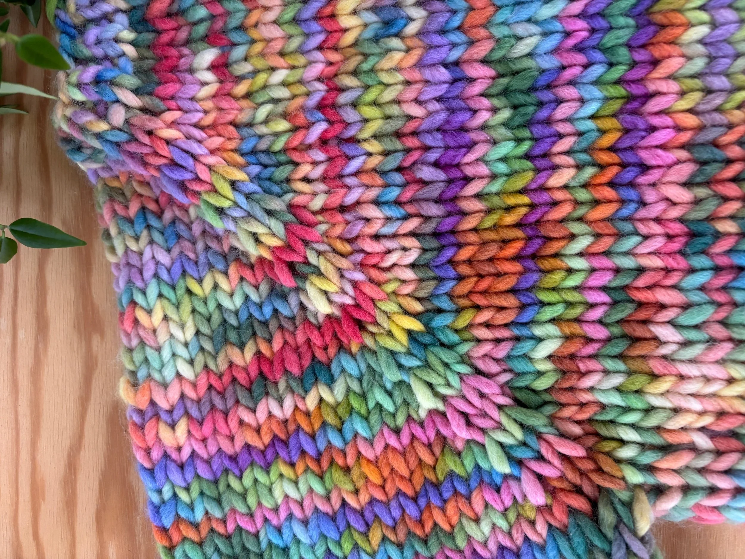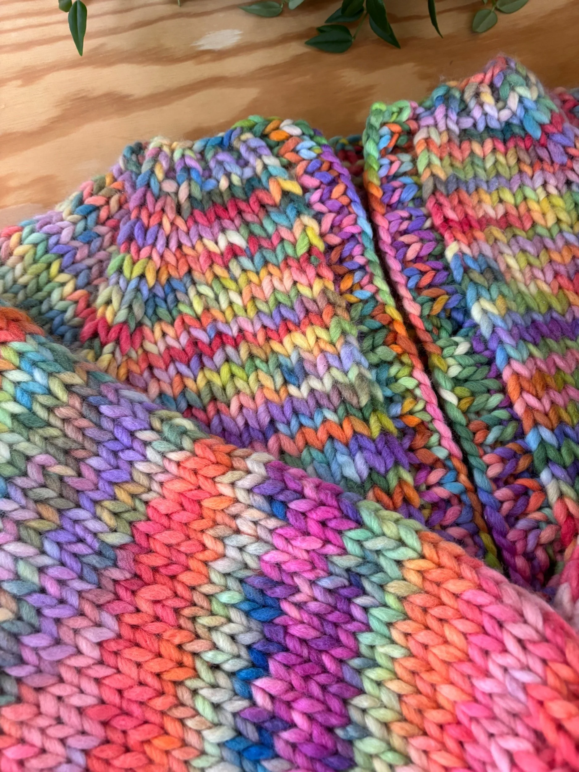 Alternatively, you can make a scrappy version by holding various strands together to create a super chunky weight - more details included in pattern.