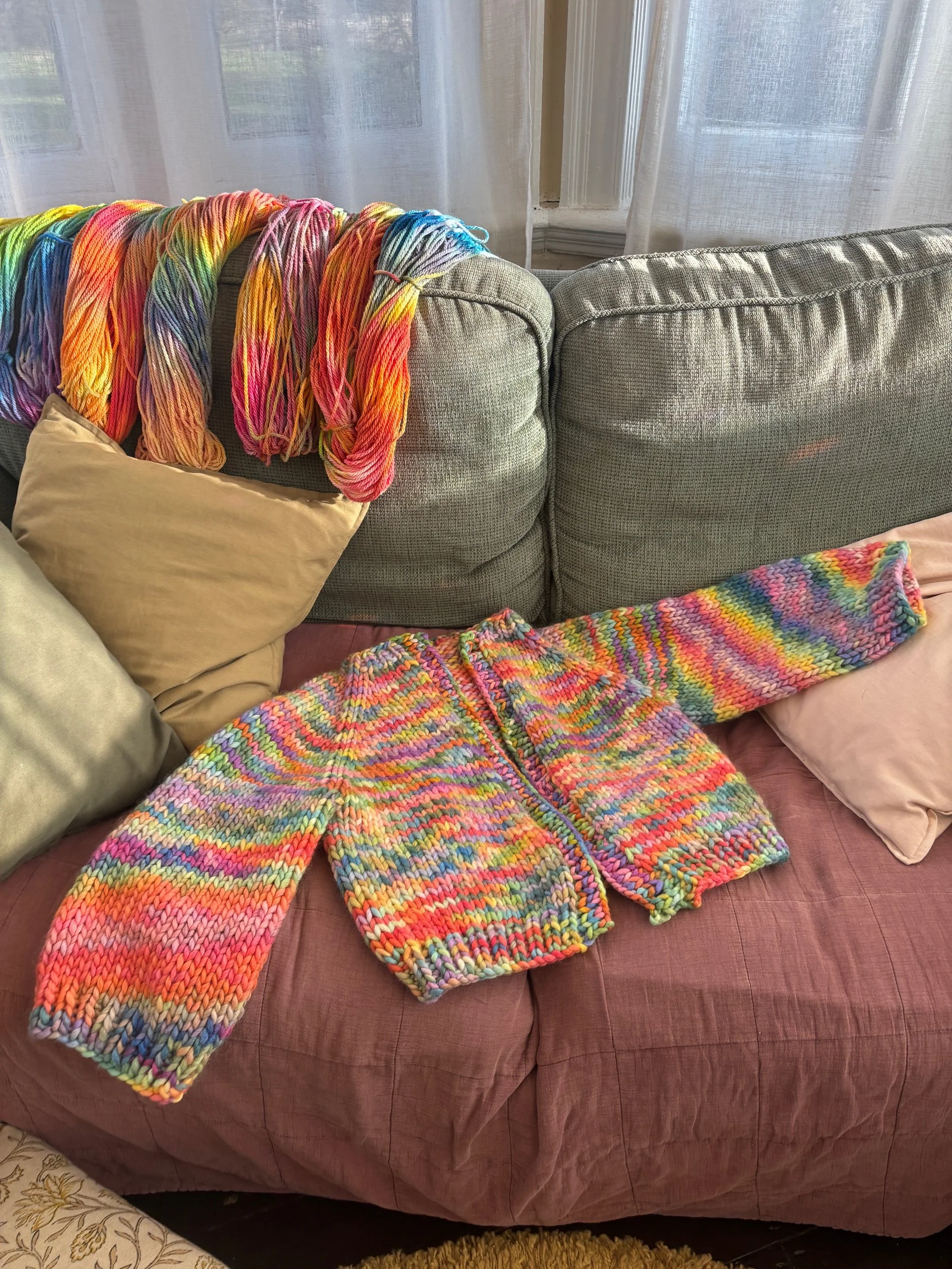 Yarn pictured on main image is my hand dyed yarn in OG Rainbow x Watercolours colourway.